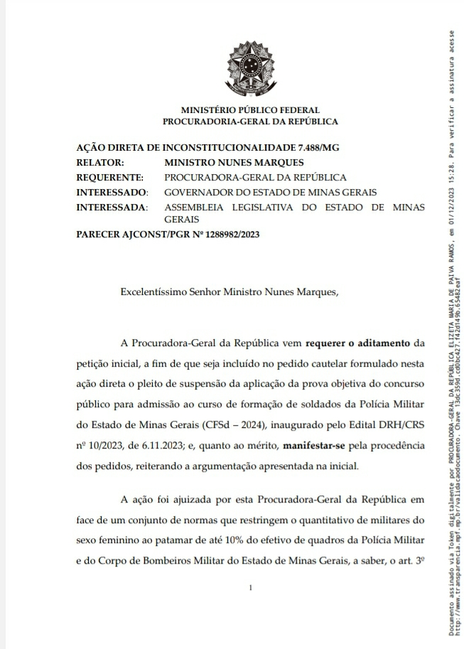 ✅ Hoje, 1º/12/2023, o MPF incluiu especificamente o Edital da PMMG no pedido daquela “Ação Judicial” quanto o Edital de Soldado 2024 publicado no último dia 05/11/2023.